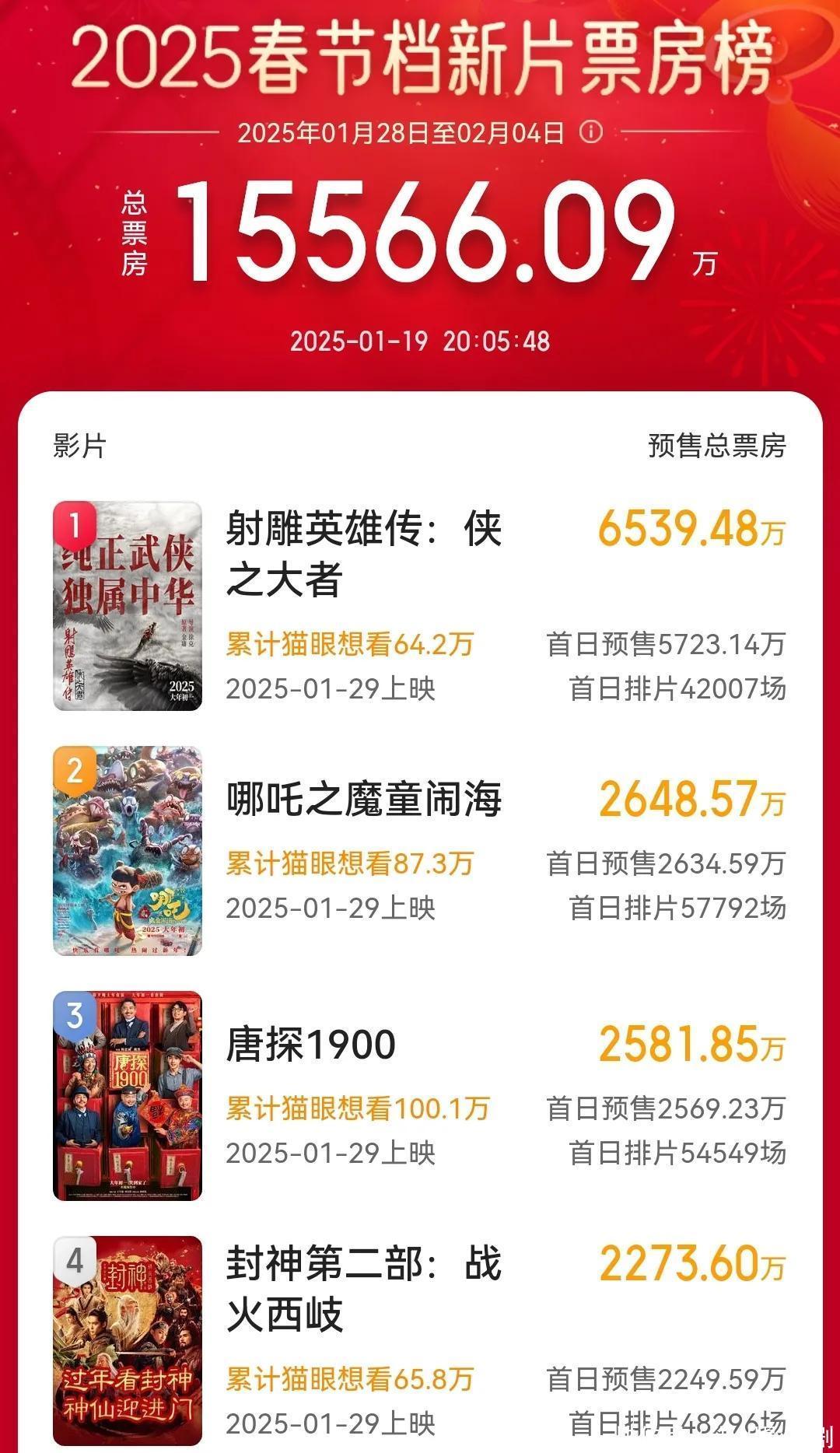 不错看出,1.5亿的预售票房里,只《射雕》就占据了六千五百多万。