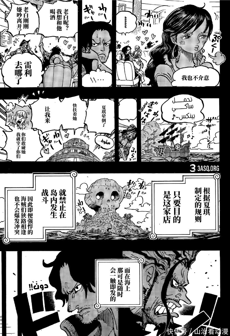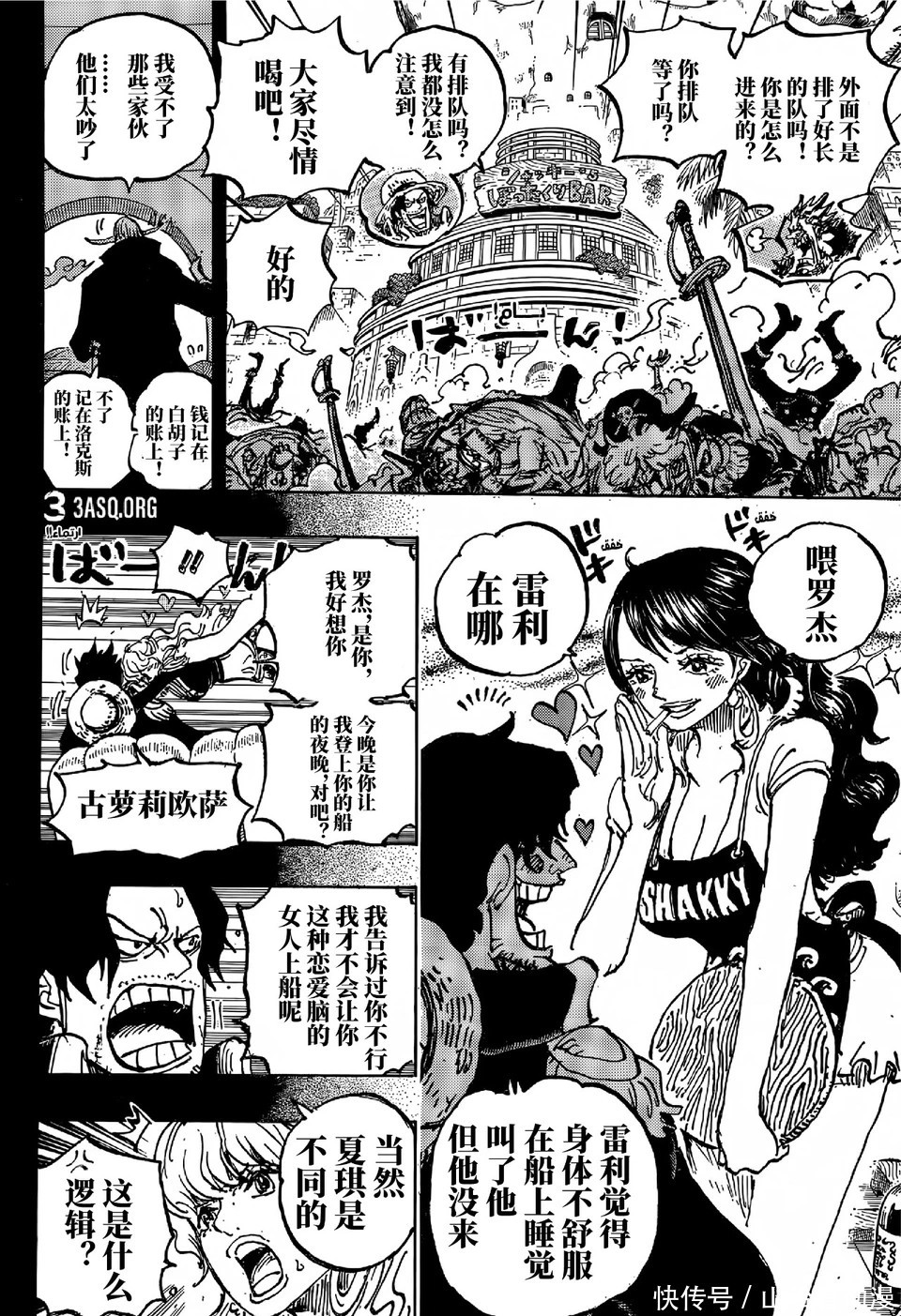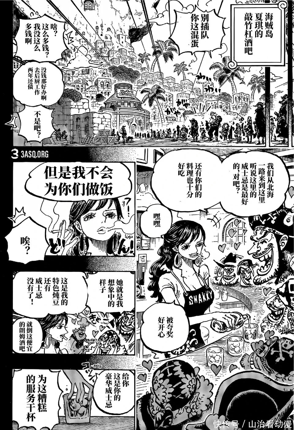 蜂巢岛的夏琪酒吧,海贼正在列队插足酒吧喝酒,夏琪切身为他们倒酒,不外夏琪不会作念饭,夏琪的颜值并不是很高,尾田却在发奋吹捧夏琪,洛克斯很感奋,他爱上另一个女东说念主,还生下一个孩子,罗杰海贼团闯入酒吧,洛克斯告诫罗杰,这是我的岛屿,你要我说几次才会懂呀,罗杰却说这是夏琪的酒吧,辞让私斗。