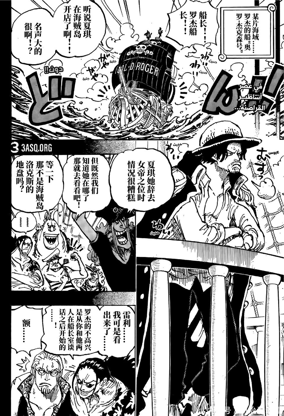 漫画最新一话的标题是洛克斯VS哈拉尔德,扉页小故事是大和拜祭的海贼果真是光月莫利亚,他亦然光月眷属的一员,不外莫利亚还在世,他被佩罗娜救走了。