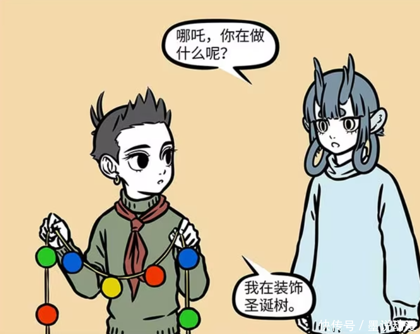 打发圣诞树的东说念主,不仅仅刑天,还有哪吒。哪吒这一次看起来相比靠谱,还准备给圣诞树缠上多种心思的灯泡。龙女走了过来,问哪吒在干什么?然而看到接下来这棵圣诞树,龙女不淡定了。