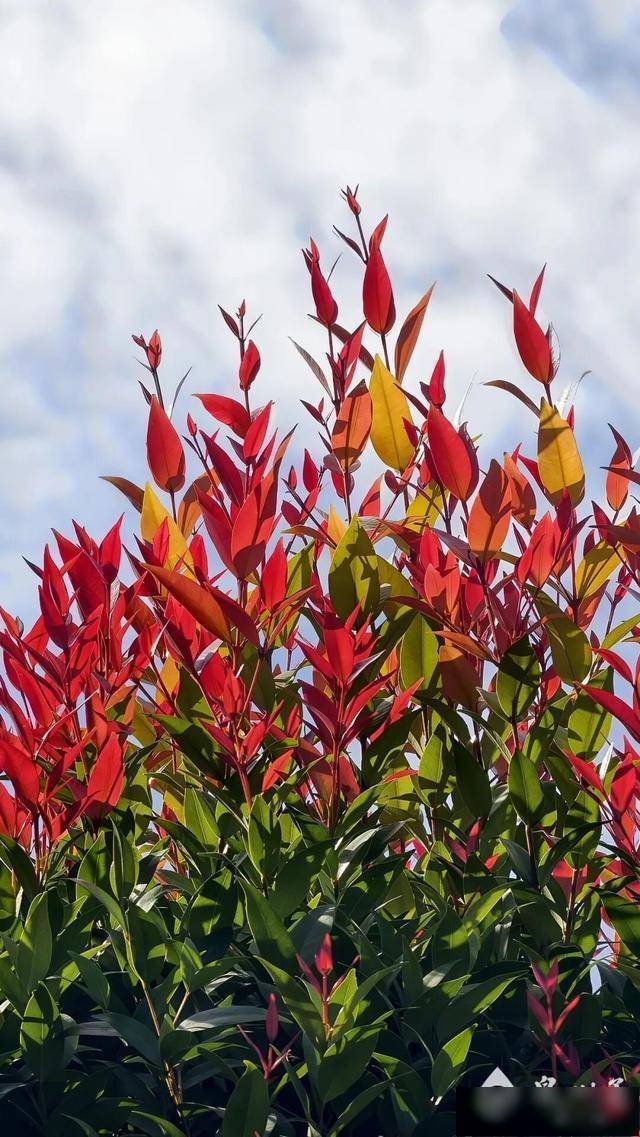 ●颜值担当:它的叶子是长圆形的,叶面油亮干净,像涂了一层蜡。最神奇的是它的变色经由:新叶红润鲜亮,跟着滋长会变为橙红或橙黄色,老叶则呈现深千里的绿色。因此,一株树上常常能同期看到红、橙、绿三种时势,档次分明。