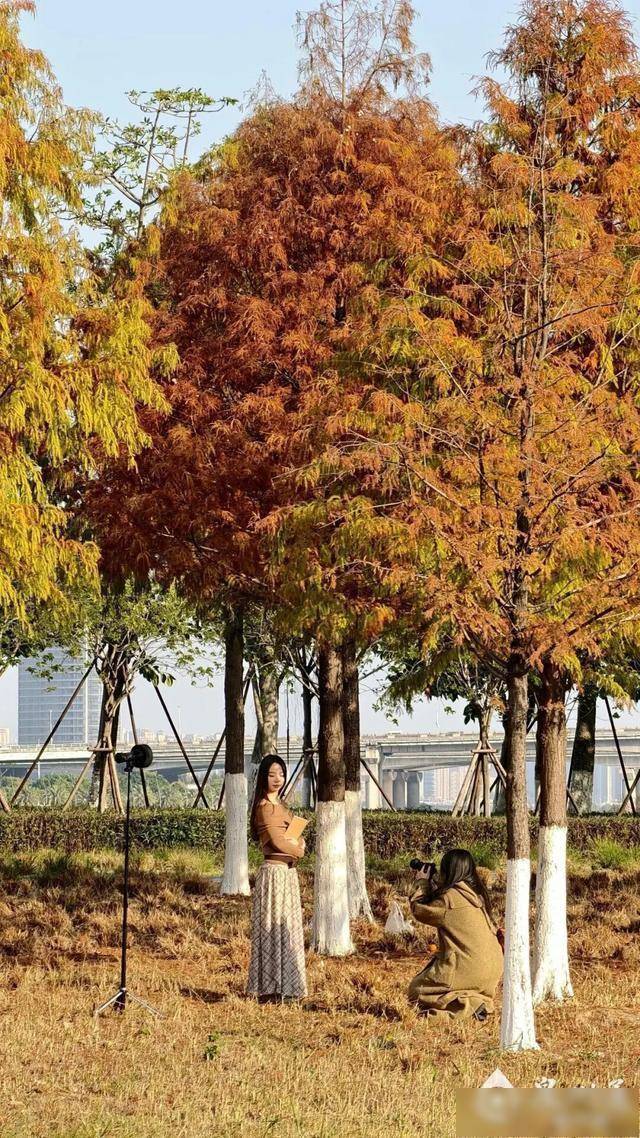 谁言冬季无斑斓,层林尽染映红杉。寒风轻拂,泉州各地的落羽杉已悄然换上红装,在阳光下通透而亮堂,成为冬日里最温存的一抹色调。无谓远行,城市之中便可再会天然之好意思。找个周末,不妨暂别喧嚣,走进这些“焦糖丛林”,在翠绿、浅黄、橘红、赭褐色调层层递进的交织中,再会一场戒指版的色调盛宴,感受季节流转的暖和陈迹,定格一幅浓墨重彩的油画万博体育APP入口,储藏一份独属于泉州的冬日梦乡。