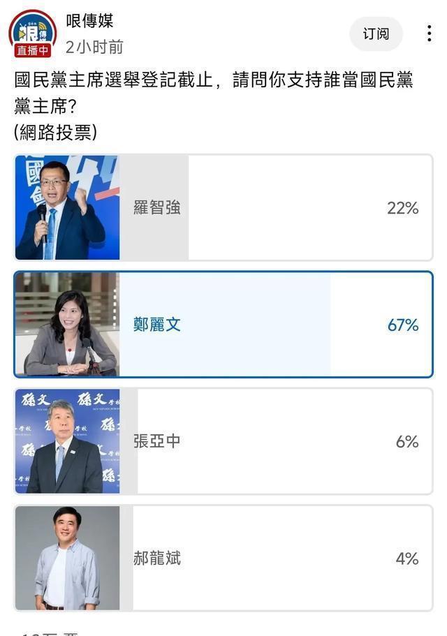 第二,因为撑执郑丽文和张亚中的东谈主,具有高度通常性。要是张亚中撑执度莳植,当然郑丽文的撑执度就缩小。而撑执他们二东谈主的与撑执郝龙斌的东谈主不近似,因此,郝龙斌受影响极小。 是以,在计策上,赵少康念念得可以。 关联词,小诸葛赵少康随机齐能算对。赵少康只算到了张亚中会赢,但没算到张亚中会输。 以我的不雅察,张亚中与郑丽文辩说,他不占上风。 当先,张亚中2020能赢朱立伦、江启辰,那是因为朱立伦、江启辰太差,莫得基础不得服从失了东谈主心,他们的立论齐扎在婢膝奴颜上。郑丽文的立论基础与朱立伦、江启辰比,有霄壤之别,根蒂不是一个主张。