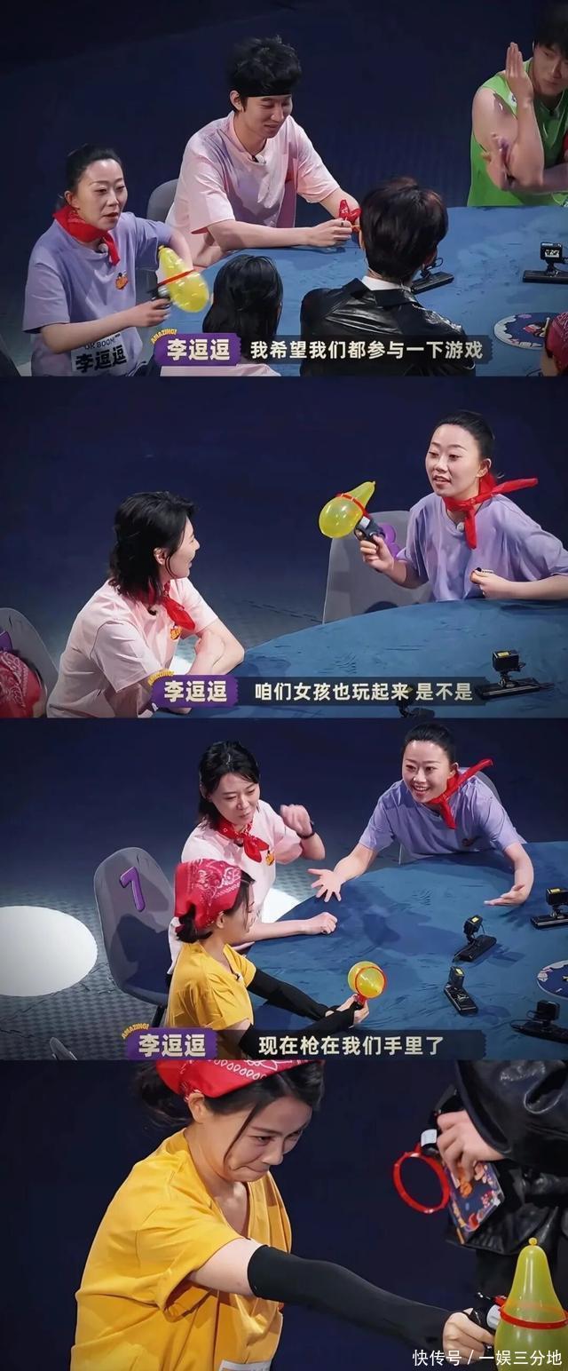 游戏桌上,男演员为“保护”女演员不舍得对她们开枪,游戏过半女演员皆备无参与。李逗逗主动邀约,并把枪指向另外的女演员。再次莳植了“咱们女孩也玩起来”“当今枪在咱们手里了”的名时局。