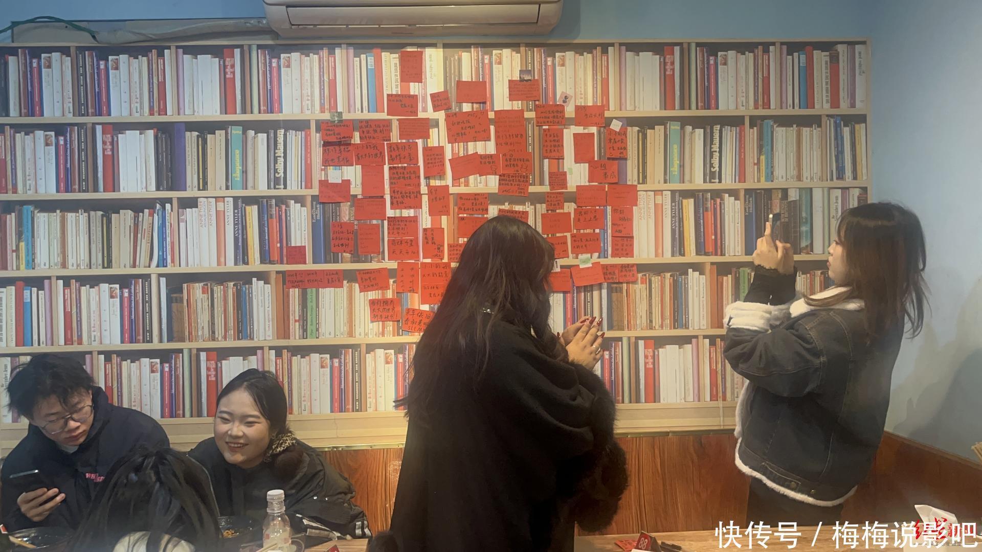 现场,专程赶来的陕西女孩小蓉(假名)正和一又友小玉(假名),打卡写下道喜。