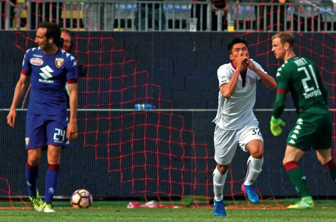 天然主队2比3的落败难以幸免,但韩光成的委宛与振奋难以羁系,他享受于每个队友的问候与拥抱,然后有利亲吻了卡利亚里的队徽……这一天,他成为了欧洲五大联赛历史上第一位进球的朝鲜球员。
