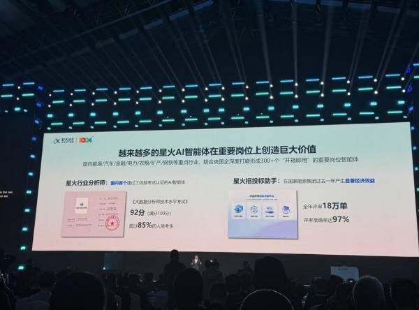 基于星火大模子建造AI哄骗发达也愈加优秀,“星火行业分析师”成为取得了国内首个通过工业和信息化部纯熟认证的行业分析AI哄骗,在《大数据分析师时代水平纯熟》中得分92分,高出85%的东说念主类考生;星火医疗大模子在泰斗评测中,专业AI调治才智业界初度达到等第病院主任级医生水平;星火投标助手在国度动力集团,昔时一年评审了18万单,评审准确率达到97%。