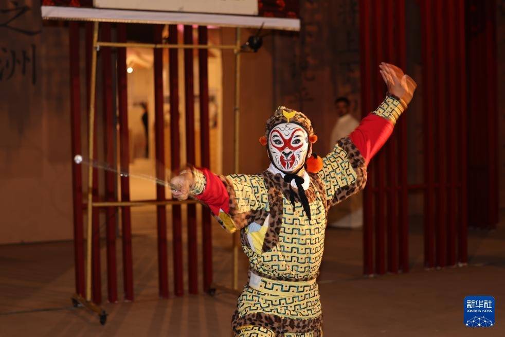 11月13日,在沙特皆门利雅得,中国演员在第三届沙特阿拉伯海外手工艺周活动上扮演。