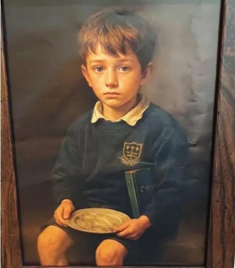 对于这幅画作的骨子,马罗也证明了他的念念法。“盘子是空的。书是合上的。他的制服上印着一个早已消散的机构的记号。”从画作中,不雅众看不出小男孩是在恭候食品、恭候刑事牵累,仍是只是只是被周围东谈主渐忘了。“接下来是一句威尔士语,翻译过来是——饥饿中,他致力学习;断绝中,他致力生计;威尔士,他称之为家。”